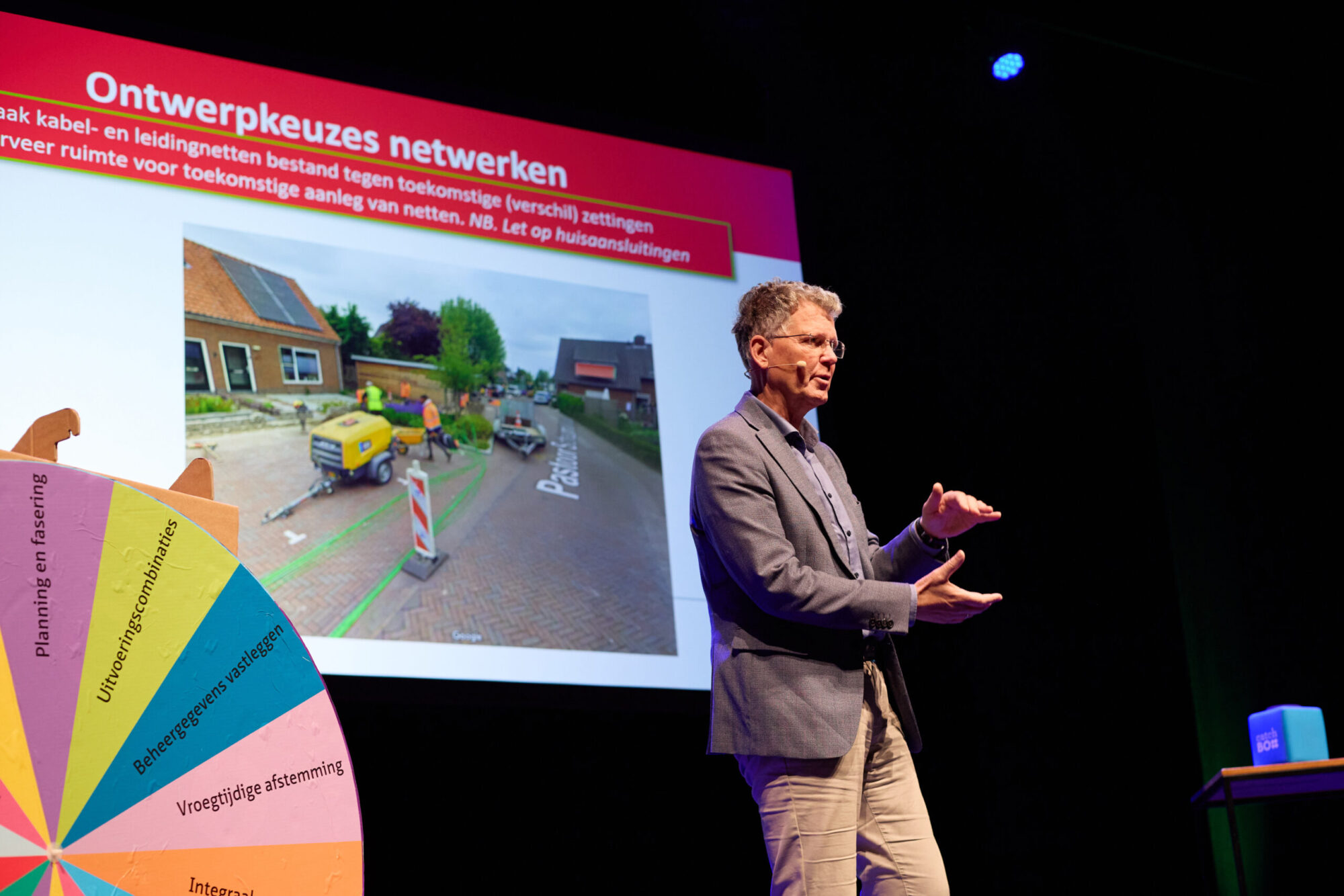 Tijdens het Nationaal Congres Bodemdaling 2024 in Zwolle, presenteerden Niels van Amstel, (Megaborn – projectadviseur engineering Waterrijk-Oost, en deelprojectleider Kabels, leidingen en bodemdaling) en Rudi Zoet (COB – Platformcoördinator en projectleider Kabels, leidingen en bodemdaling) het opgeleverde handboek over reconstructieprojecten en kabels en leidingen. Met de 35 aanwezigen werden tijdens de subsessie voorbeelden besproken van ingewikkelde puzzels die kabels en leidingen kunnen opleveren bij projecten in de openbare ruimte. De geleerde lessen uit de praktijk in De Kanis en Waterrijk-Oost zijn toegelicht en de aanwezigen werden uitgenodigd hun kijk te delen op de kennisbehoeften en gewenste vervolgonderzoeken op dit onderwerp. Met name het vastleggen van informatie over funderingsconstructies en andere bodemobjecten wordt gezien als een wenselijke vervolgstap.