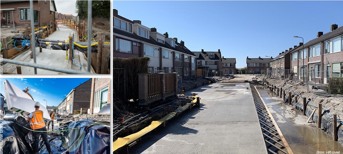Voorbeeld van een reconstructieproject (Kanis in de gemeente Woerden), waarbij een zettingsvrije constructie wordt aangelegd om bodemdaling in de openbare ruimte tegen te gaan. Het verleggen van kabels en leidingen bleek een ingewikkelde kwestie met vraagstukken op het gebied van planning, fasering en coördinatie.