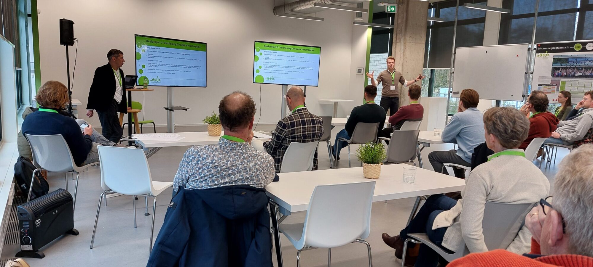 Niels van Amstel (Megaborn) vertelde hoe de gemeente Boskoop te werk is gegaan bij het onderhoudsproject Waterrijk Oost. In dit project wordt door middel van EPS en schuimglas een zettingsarme constructie gemaakt onder de openbare ruimte. De geleerde lessen zijn dat vroegtijdige afstemming met netbeheerders van groot belang is en dat de samenwerking met (aannemers van) netbeheerders goed moet worden ingericht. Na afloop is een rondwandeling gemaakt door de wijk onder begeleiding van aannemer Bunnik Groep.