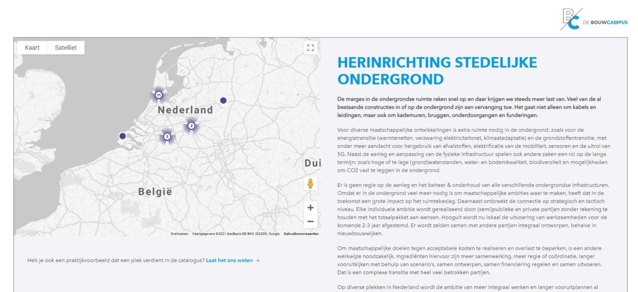 Hiermee wordt de branche stapsgewijs gestimuleerd en begeleid in multidisciplinair programmeren, ontwerpen en uitvoeren. Het resultaat van dit project is een eerste stap naar het uiteindelijke doel: een routekaart of handleiding, aangevuld met een bibliotheek met prototypen van bestaande oplossingen en praktische, bruikbare instrumenten. In eerste aanleg zijn gemeenten, netbeheerders voor energie, water, warmte, media en communicatie hierbij gebaat. In tweede aanleg ook waterschappen, provincies, wooncorporaties, bouwers en vastgoedbeheerders.