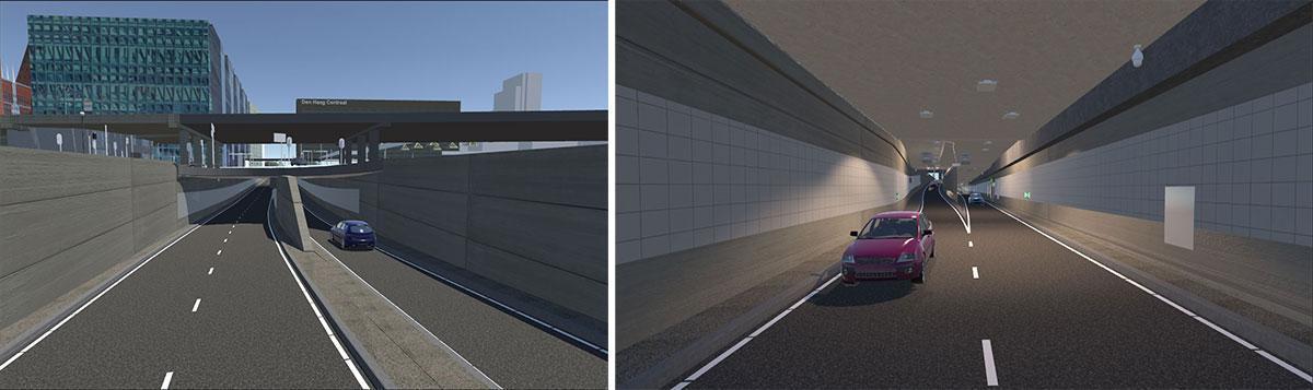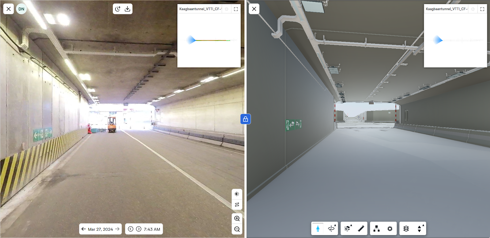 Figuur: Virtuele camerabeelden vanuit de digitale tunneltweeling.